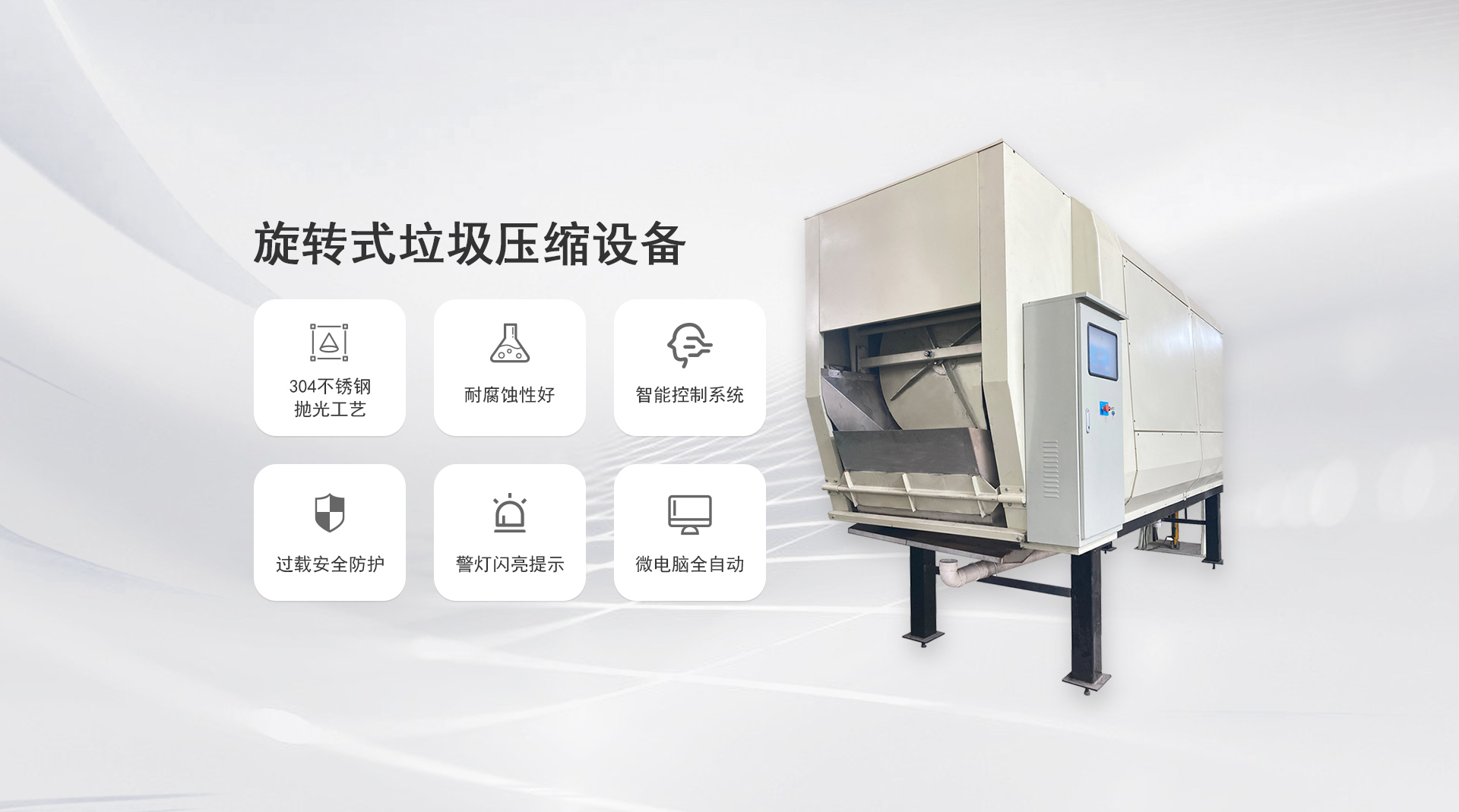 工作原理:滾筒螺旋葉片旋轉壓縮儲存。滾筒和葉片采用SUS304不銹鋼板制造,耐腐蝕性好。當垃圾進入滾筒內,滾筒旋轉,在螺旋葉片作用下壓縮垃圾...